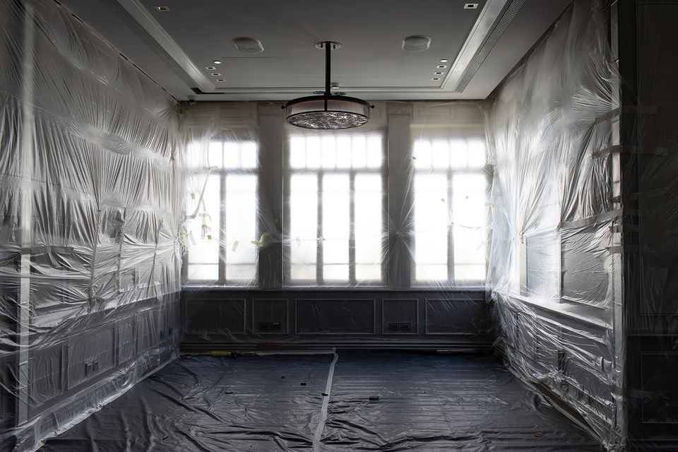 זמן קורונה, יולי 2020 ואני מגיעה לצלם פרויקט במלון " הנורמן" ורואה שהוא עטוף כולו בניילון, הצילומים המשפחתיים המכוסים, העיצוב היוקרתי, הספרים בבר הספריה, האור שנכנס מהחלונות ועבר דרך הניילון - כל אלה יצרו מראה שלא יכולתי לעמוד בפניו.